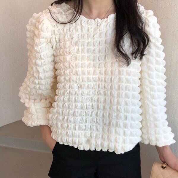 ボリュームスリーブポコポコトップス
