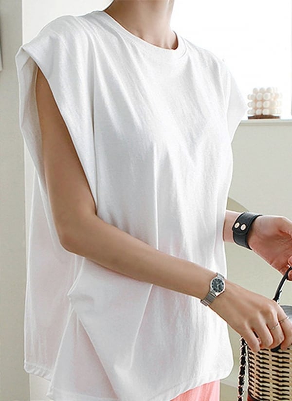 程よく肩が隠れているので、腕の肌見せ感が控えめです。ノースリーブに抵抗のある方にもおすすめ。
